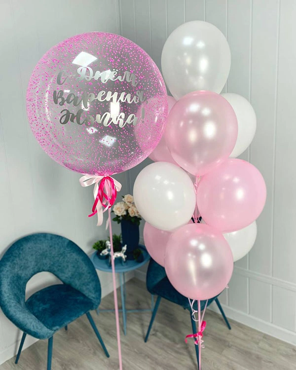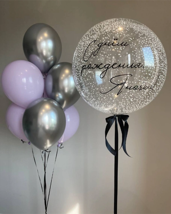 Шары с глиттером или конфетти: Внутри шара находится блестящее наполнение.